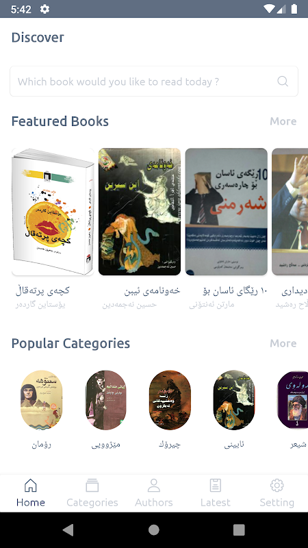 Este aplicativo contém centenas de livros curdos com mais livros adicionados ao nosso servidor diariamente. Os livros são classificados em várias categorias, incluindo histórias, romance, filosófico, poema, história, livros científicos, religiosos, linguísticos, sociais e infantis.