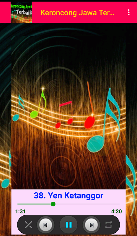 As melhores canções javanesas de Keroncong contêm uma coleção de canções javanesas de Keroncong cantadas por cantores famosos de Keroncong. Instale e aproveite as vozes doces de cantores javaneses tocando as músicas mais populares do keroncong javanês, como Candi Semarang Asmaradana, Kethek Ogleng, Mbok Ya Eling, Yen Ing Tawang Ana Lintang, etc. Todas as músicas ainda podem ser ouvidas mesmo sem conexão com a Internet. Cada música pode ser usada como toque, alarme ou notificação em um gadget Android.