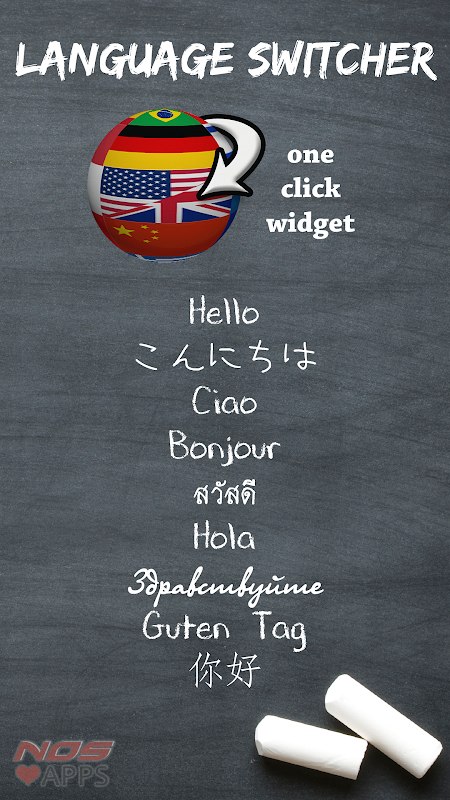 Coloque o widget do seletor de idioma na tela inicial e toque nele para alternar os idiomas.