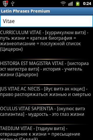 Esta aplicação vai ajudá-lo a aprender as frases feitas em momentos diferentes em grandes nomes latinos - pode ser lido como um banco de dados total de citações, e cada dia lendo uma frase aleatória e levá-la em serviço para o dia. Configurações permitem que você ative ficando frases aleatórias na barra de status, o tempo definido pelo usuário, com a repetição de todos os dias.
