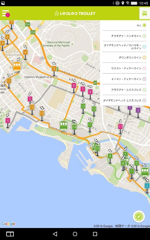 1)LeaLeaトロリーのバス、バス停の位置の確認