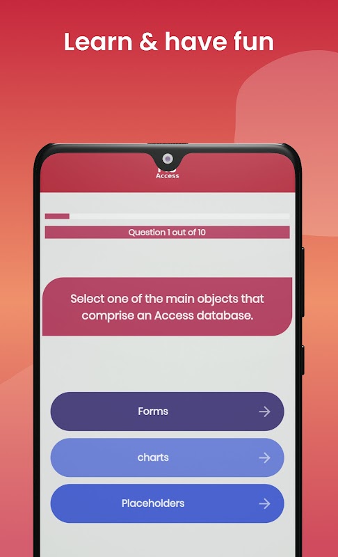 People who want to learn how to work with Microsoft Access can use this quiz app. As a result of this quiz app, you will have a better understanding of MS Access and how it can be used to store and retrieve data.
