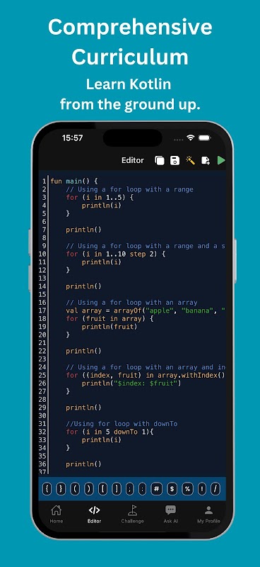 Aprendizado abrangente de Kotlin: Do iniciante ao avançado, nossas lições passo a passo cobrem tudo que você precisa para aprender o desenvolvimento em Kotlin e Android.