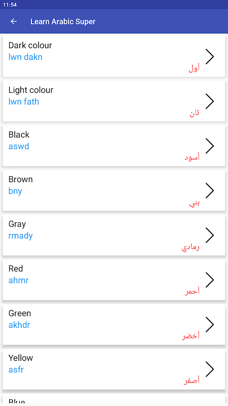 Vocabulário rico: expanda seu vocabulário árabe com nosso extenso banco de palavras. Aprenda novas palavras e frases diariamente, completas com pronúncias, significados e exemplos de uso. Nossa seção de vocabulário foi projetada para ajudá-lo a se comunicar de maneira eficaz em situações cotidianas.