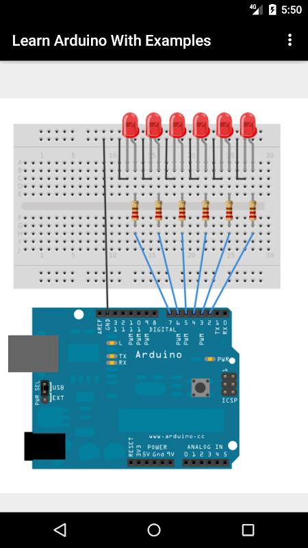Learn Arduino With Examples app teaches you basic concepts about Arduino using suitable examples. Arduino consists of both a physical programmable circuit board as well as a software, or IDE (Integrated Development Environment) that runs on your computer, which can be used to write & upload computer code to the physical board.