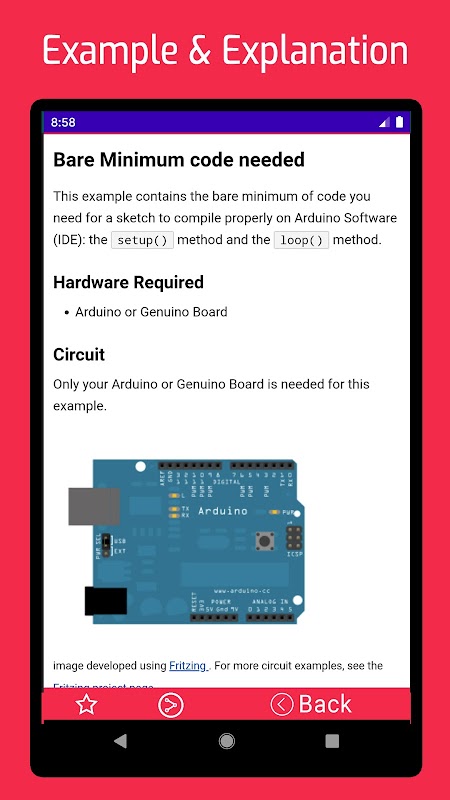 Learn Arduino Tutorial app is essential for engineering students. This basic arduino programs app will provide you formula & examples in detail. It will provide you most common & useful arduino programs lessons. So now you can carry your basic arduino books collection anywhere by this app and can learn anytime.