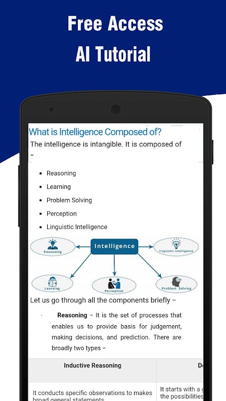 This App provides introductory knowledge on Artificial Intelligence. It would come to a great help if you are about to select Artificial Intelligence as a course subject. You can briefly know about the areas of AI in which research is prospering.