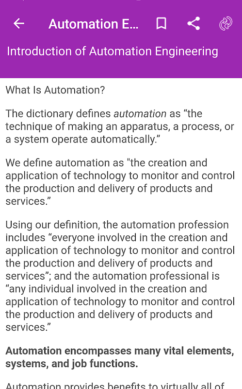 Você pode aprender facilmente engenharia de automação usando este aplicativo. A Engenharia Básica de Automação é muito fácil de aprender se você estiver interessado em Engenharia de Automação. Este aplicativo tem notas básicas de engenharia de automação e tutorial.