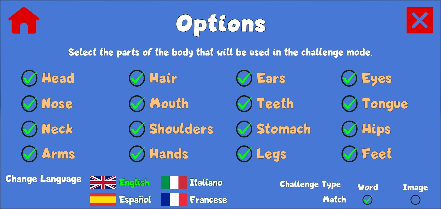 - Combinar Palavra - Combine a parte da imagem do corpo com a ortografia da palavra correspondente.