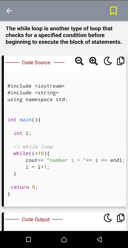 Esta aplicação irá ajudá-lo a aprender a linguagem de programação C ++ através de exercícios e sua saída, você irá estudar algo como variáveis, ponteiros, estruturas, funções, classes e objetos, String, herança.