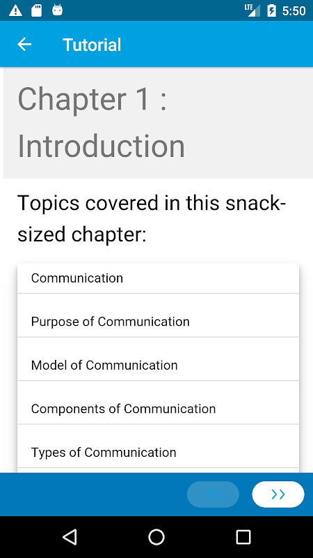 You have limited access to the content provided. For full access to the content, please login and purchase this application. This app provides a quick summary of essential concepts in Communication Skills by following snack sized chapters: