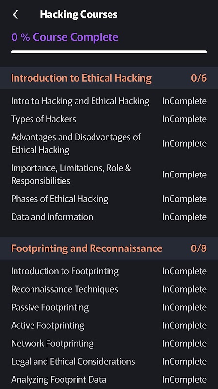 Neste aplicativo Ethical Hacking Learning, você poderá começar com os conceitos básicos de segurança cibernética e hacking para poder desenvolver suas habilidades em torno disso. Você pode desenvolver suas habilidades de hacking em qualquer lugar com os Tutoriais de hacking neste aplicativo.