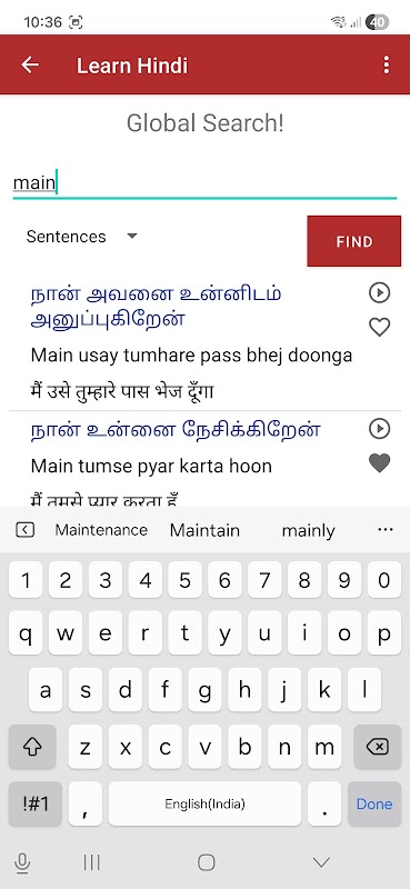 Este aplicativo ajuda você a aprender hindi falado através do tâmil, eliminando a necessidade de aprender a escrita hindi.