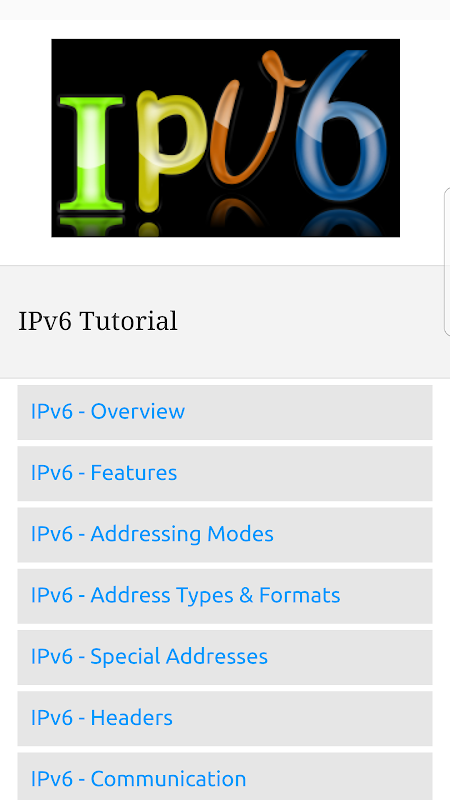 -> Learn IPv6 Tutorial Offline App come with complete comprehensive and responsive layout.