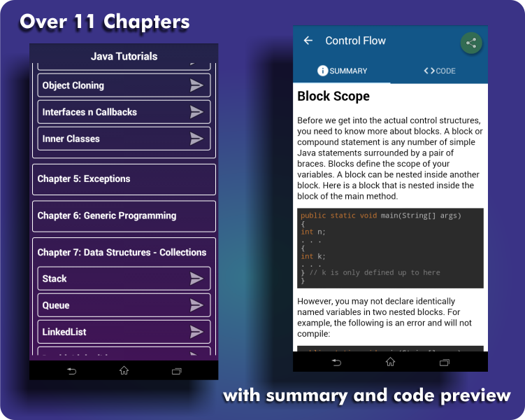 1) Java Tutorials / Guides / Codes , programming , over 11 Chapters.
