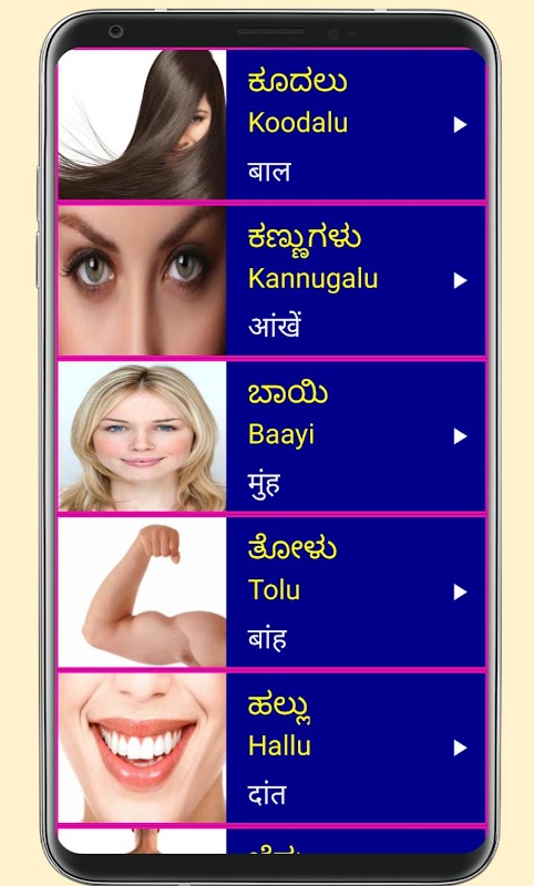 2. Cada palavra Kannada tem uma imagem clara 📸🖼️ e pronúncia de áudio 🎵🔊 para fazer Aprender Kannada via Hindi fácil.