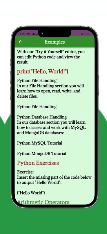 Observe que o conteúdo e os recursos específicos do aplicativo Learn Python Tutorials podem variar, mas o objetivo geral é fornecer aos usuários um recurso de aprendizagem acessível e abrangente para programação Python.