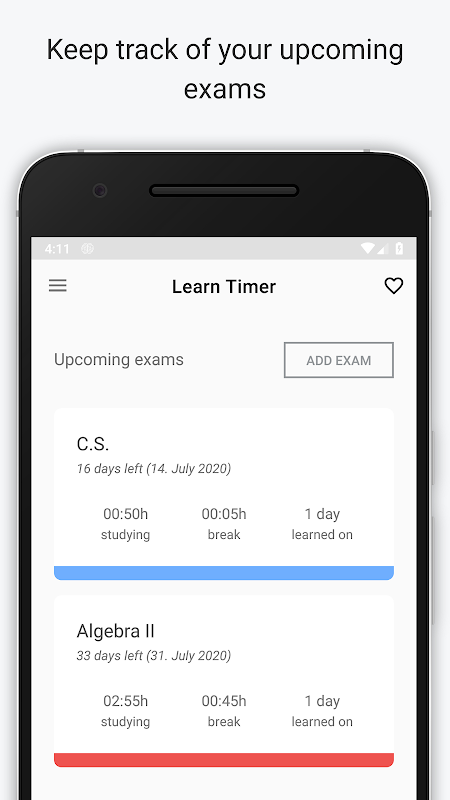 Ele também permite rastrear para qual exame você está estudando e fornece estatísticas interessantes para rastrear sua produtividade.
