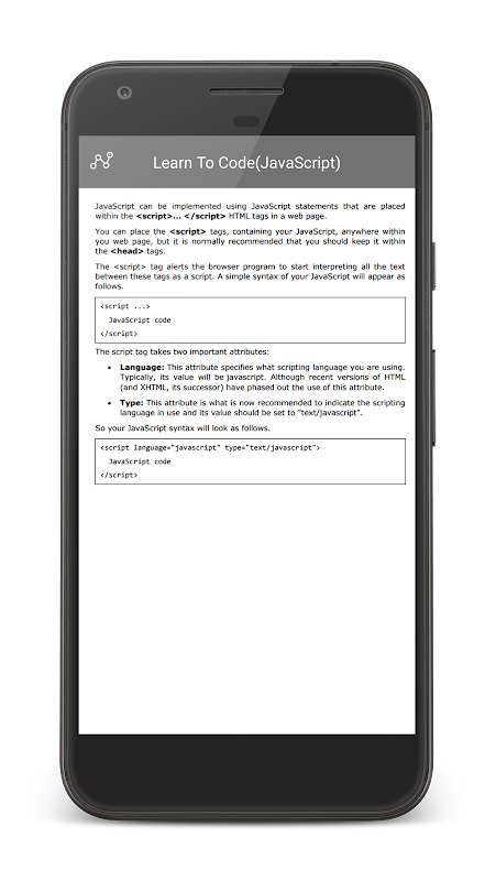 Learn To Código (JavaScript) App de GJAM.in é uma plataforma fácil de usar, fácil de usar para aprender JavaScript, tanto no nível fundamental e avançado. Torne-se um desenvolvedor de JavaScript usando aprender a código (JavaScript) App hoje!