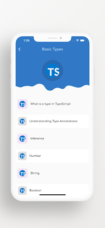 Este aplicativo inclui todos os tópicos que ajudam a aprender TypeScript. Estes são Introdução do TypeScript, Recursos do TypeScript, Componentes do TypeScript, Primeiro programa do TypeScript, TypeScript Types, TypeScript Variables, TypeScript Operators, TypeScript Decision-making, TypeScript Loops, Functions, Classes, Arrays, Namespace, Module, Ambient e muito mais .