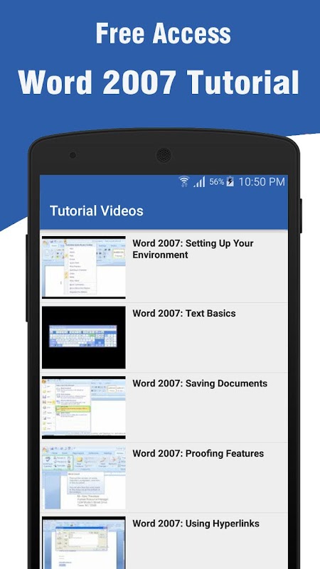 This app will guide you through the new features of MS Word 2007 to help you easily learn Ms Word and Practice any time.