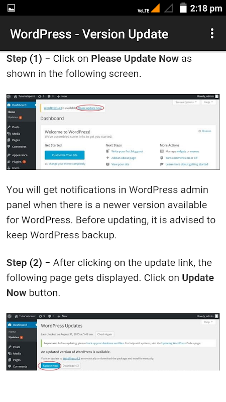 WordPress é um sistema de gerenciamento de conteúdo de código aberto (CMS), que permite aos usuários construir sites dinâmicos e blog. WordPress é o sistema de blogs mais popular da web e permite atualizar, personalizar e gerenciar o site a partir do seu back-end CMS e componentes. Este tutorial vai te ensinar o básico do WordPress usando o que você pode criar sites com facilidade. O tutorial é dividido em várias seções para conveniência. Cada uma destas seções contêm temas relacionados com as imagens que explicam as telas de administração do WordPress.