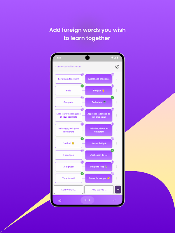 Ao criar listas compartilhadas, os usuários podem monitorar sua jornada de aprendizado juntos, encorajando uns aos outros conforme dominam novos elementos do idioma!