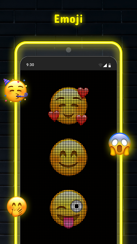- Transforme seu telefone em um banner legal de néon com texto em movimento, uma luz LED sincronizável.