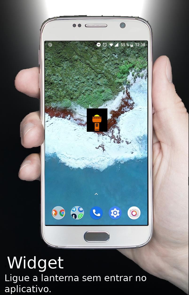 Lanterna: widget, luz fixa, bússola, tela colorida. Ligue com os botões.