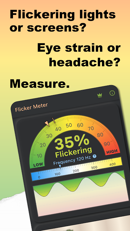 Você já sentiu cansaço visual, dor de cabeça, enxaqueca ou outros sintomas por estar exposto a luzes ou telas tremeluzentes? Use este aplicativo para medir quais luzes ou telas estão piscando e quanto e quais não estão piscando!