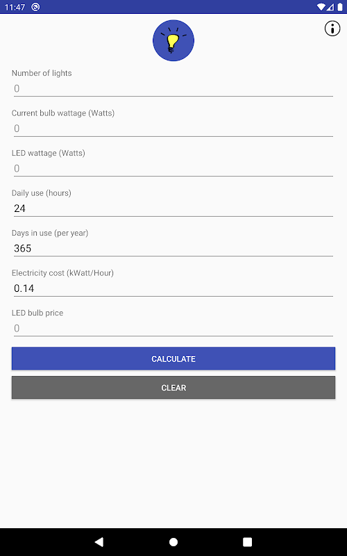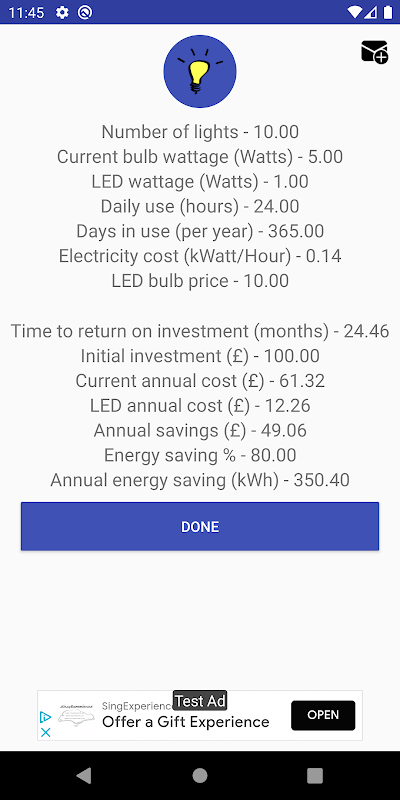 Esta calculadora fornecerá as seguintes informações se você mudar de uma lâmpada padrão para LED:
