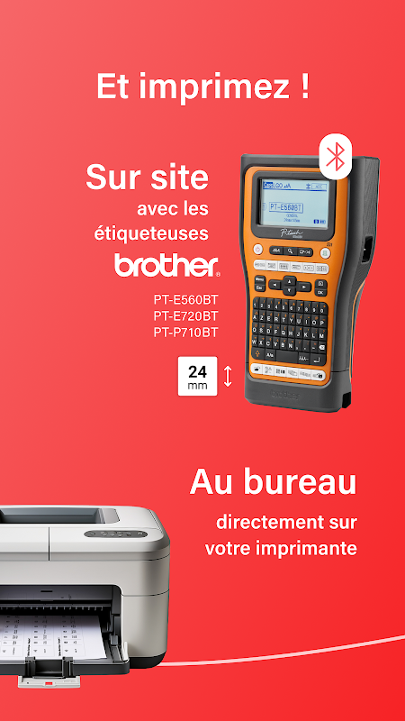 Imprima-as diretamente no local com as impressoras de etiquetas Bluetooth Brother PT-E560BT, PT-E720BT e PT-P710BT em fita de 24 mm para máxima flexibilidade,