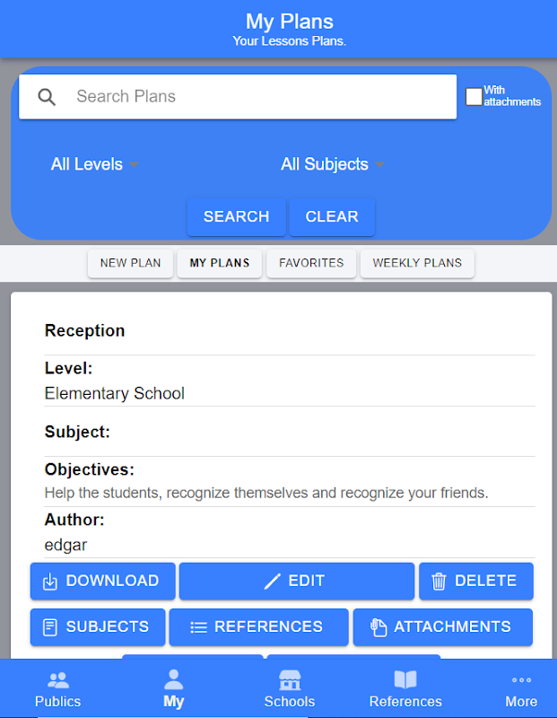 Este aplicativo permite que você baixe planos de aula de