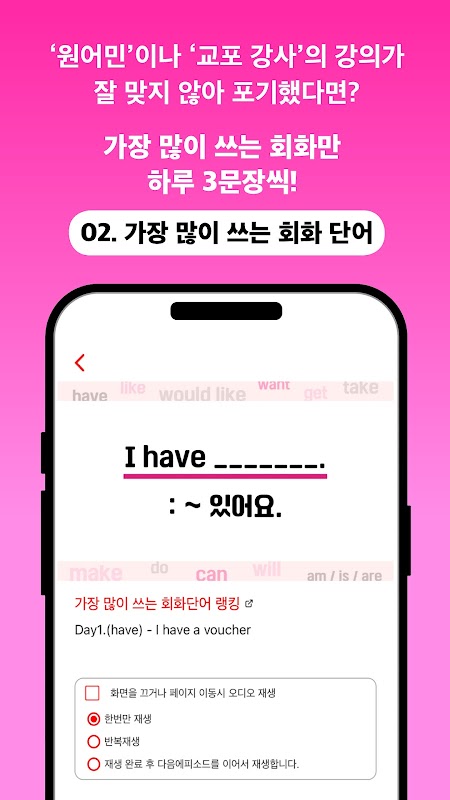 Programas de aprendizagem de aplicativos de inglês otimizados para cada vida local, como ‘Inglês para viagens’, ‘Padrões de conversação’, ‘Expressões em inglês’ e ‘Inglês para a vida diária’ através da ‘Série mais usada’.