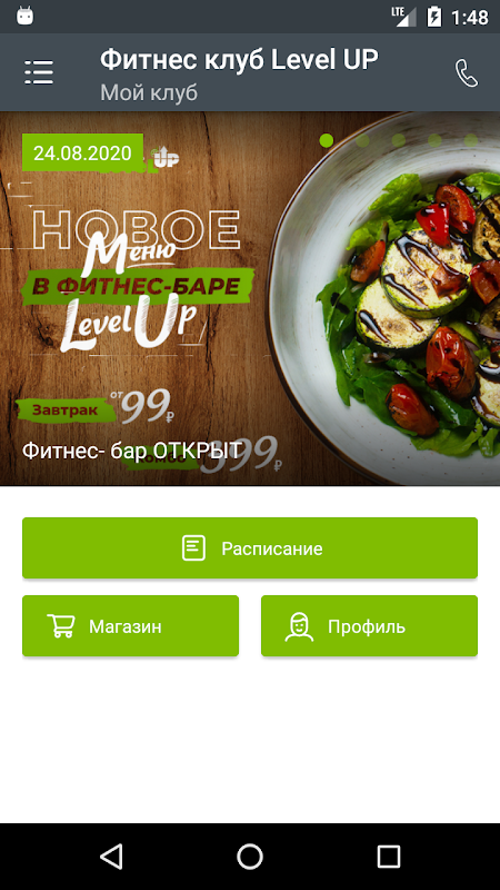 O aplicativo é projetado para os clientes do clube de fitness Level Up.