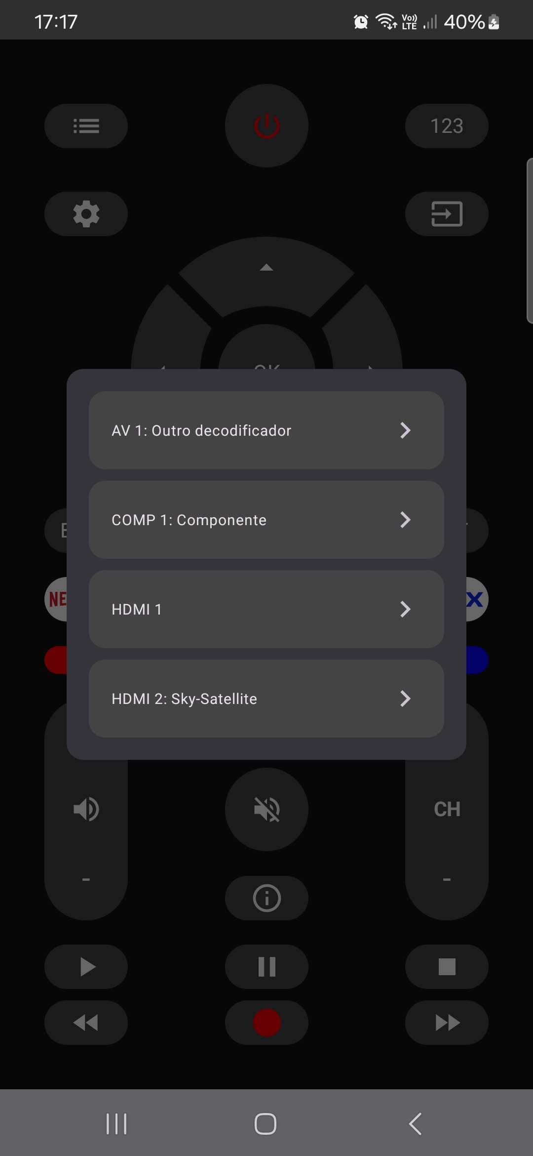 - Controle completo: volume, canais, navegação, entradas
