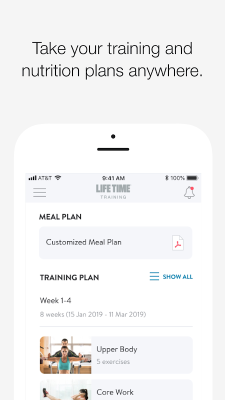 Criado por um personal trainer certificado da Life Time, seu programa será personalizado de acordo com seus objetivos e habilidades.
