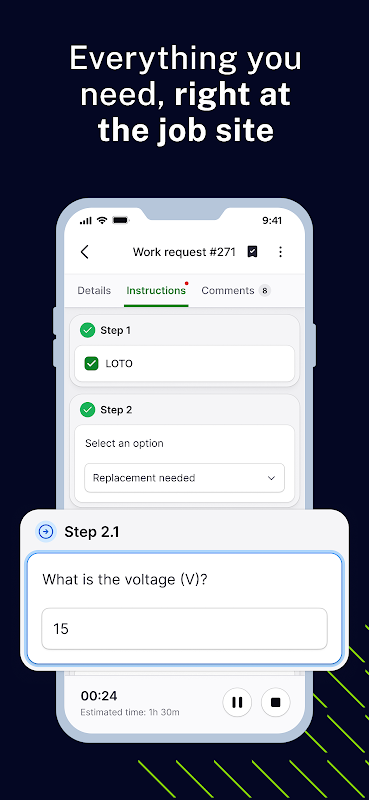 Modernize sua manutenção: gerencie ordens de serviço, ativos e manutenção preventiva.