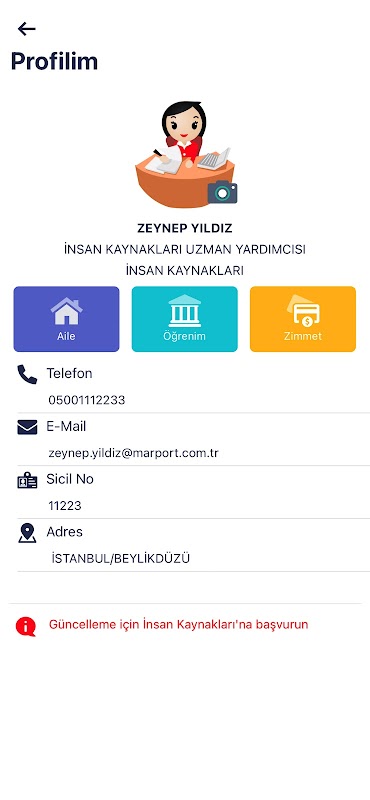 -Você pode visualizar suas informações pessoais e enviar suas solicitações de alteração ao RH.