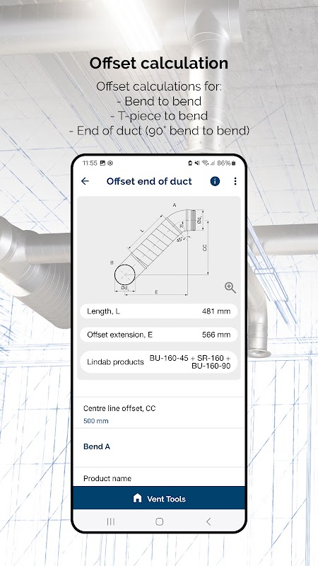 Lindab Vent Tools é uma coleção de ferramentas práticas de cálculo para sistemas de ventilação na indústria de HVAC. O aplicativo facilita o cálculo do dimensionamento do duto, queda de pressão, fluxo de ar e deslocamento na instalação dos produtos Lindab. O aplicativo também inclui uma calculadora de fator k que pode ser usada fora da linha de produtos da Lindab.