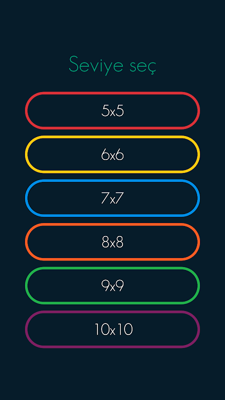 * Seviyeler 5x5 - 6x6 - 7x7 - 8x8 - 9x9 - 10x10 olmak üzere 5 seviyeden oluşmaktadır ayrıca her seviyede 50 bölüm vardır.