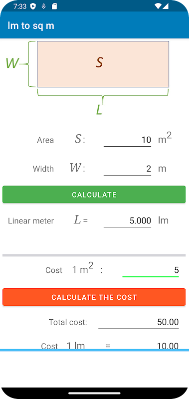Converta metros lineares em metros quadrados e metros quadrados em lineares.