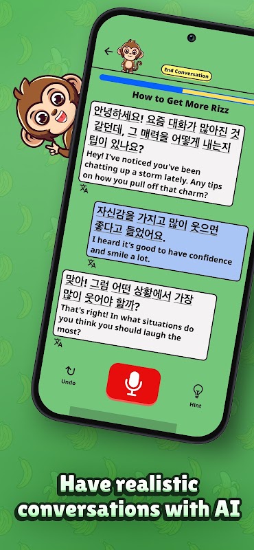 • Conversas Simuladas: Envolva-se em cenários realistas que cobrem diversos tópicos, com a capacidade de criar seus próprios cenários personalizados sobre qualquer tópico que desejar!