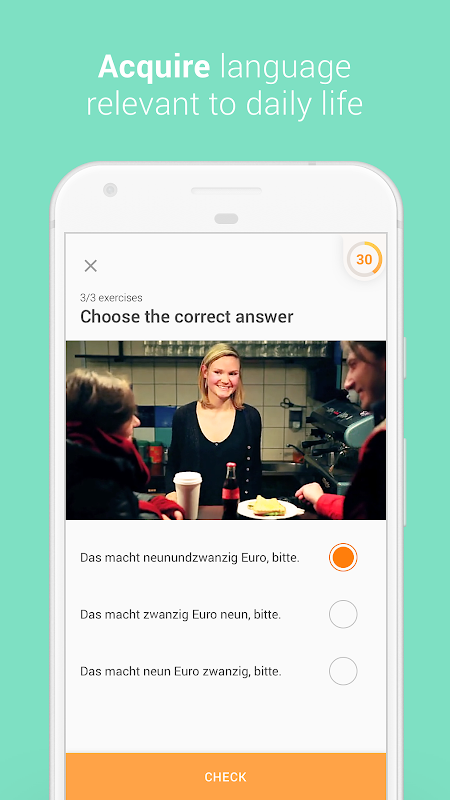 Os nossos métodos de ensino comprovada combinada com entretenimento materiais ajudá-lo a falar uma língua estrangeira mais rápida e simples do que você fez na escola. Grandes vídeos mostrar-lhe como falantes nativos usar sua língua em situações reais (por exemplo, ao viajar, em um restaurante ou no trabalho). Você pode estender o seu conhecimento com os nossos treinador de vocabulário, tutoriais de gramática, exercícios interativos e jogos. No final de um curso você também vai receber o nosso certificado de modo que você pode provar aos outros o quão bem você pode falar sua língua nova favorito.