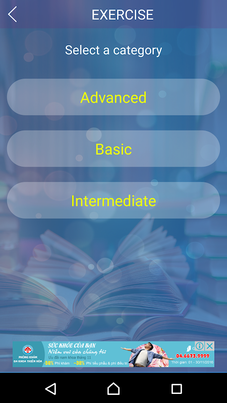 This is the application on the phone used to learn English. This app is suitable for all who want to learn English as quickly or English exam.