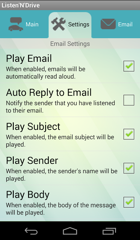 Listen'N'Drive automatically reads your incoming email and text messages aloud while driving.