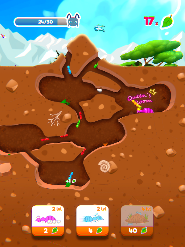 🌟 Upgrade the queen ant to lay more eggs and grow your army