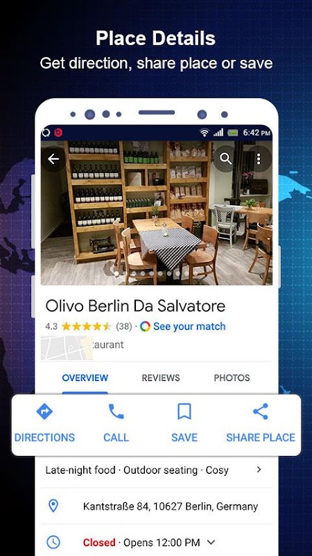 Earth Map GPS ao vivo Route Finder é o mais extraordinário e mais rápido do mundo, correndo, mais fácil e avançado usuário mapa terra pode desfrutar de viagem com este incrível mapa da terra ao vivo com navegação por voz, encontrar rota, lugares próximos e giroscópio bússola, este aplicativo fornece vários tipos de mapas como Hybrid, visualização Normal, visualização de satélite, visualização de terreno e informações sobre todos os lugares do mundo e mostrar os locais mais próximos em sua localização, você pode pesquisar o local em qualquer país. Este mapa do Live Earth e locais próximos, é suportado por todos os tipos de dispositivos móveis Android, especialmente para smartphones Galaxy e tipo de qualquer comprimido. Mapa da Terra Rastreamento da rota 2019 explora o mundo inteiro localização sábia com um golpe em menos de tempo.