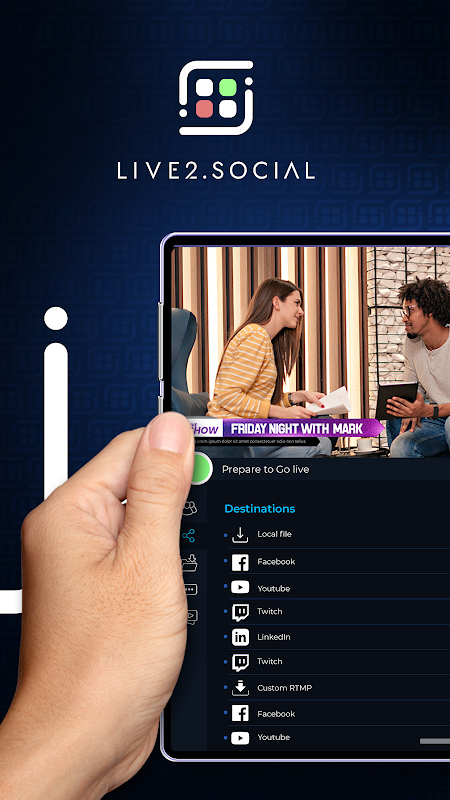O Live2.Social funciona com seus dispositivos Android ou IOS, capture vídeo de vários ângulos de câmera simplesmente conectando seu smartphone ou tablet na mesma conexão wi-fi ou escolha câmeras remotas - e edite em tempo real -