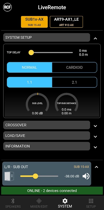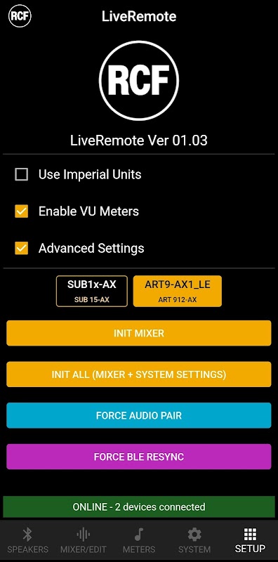 O aplicativo RCF LiveRemote permite o controle total de vários alto-falantes e subwoofers ativos do seu smartphone, via Bluetooth, e foi atualizado para incluir o controle remoto de modelos de alto-falantes adicionais.